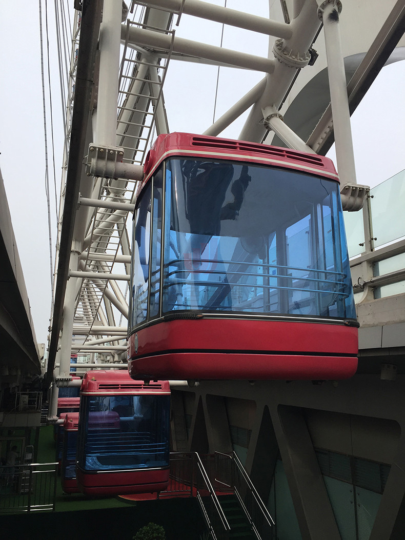 摩天輪直徑為110米,輪外裝掛48個(gè)360度透明座艙,每個(gè)座艙可乘坐8個(gè)人,可同時(shí)供384個(gè)人觀光。摩天輪旋轉(zhuǎn)一周所需時(shí)間為28分鐘,到達(dá)最高處時(shí),周邊景色一覽無余,甚至能看到方圓40公里以內(nèi)的景致,被譽(yù)為“天津之眼”。